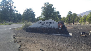 While in Williams, we found out that Flagstaff has not one, not two, but three national monuments. We planned to visit all three. Since we arrived early in the day, after lunch we headed for Sunset Crater Volcano National Monument which is north of Flagstaff. Another reason for our drive was to check the national forest campground at the entrance to Sunset Crater. Unfortunately, it wouldn't open until 4 days later.